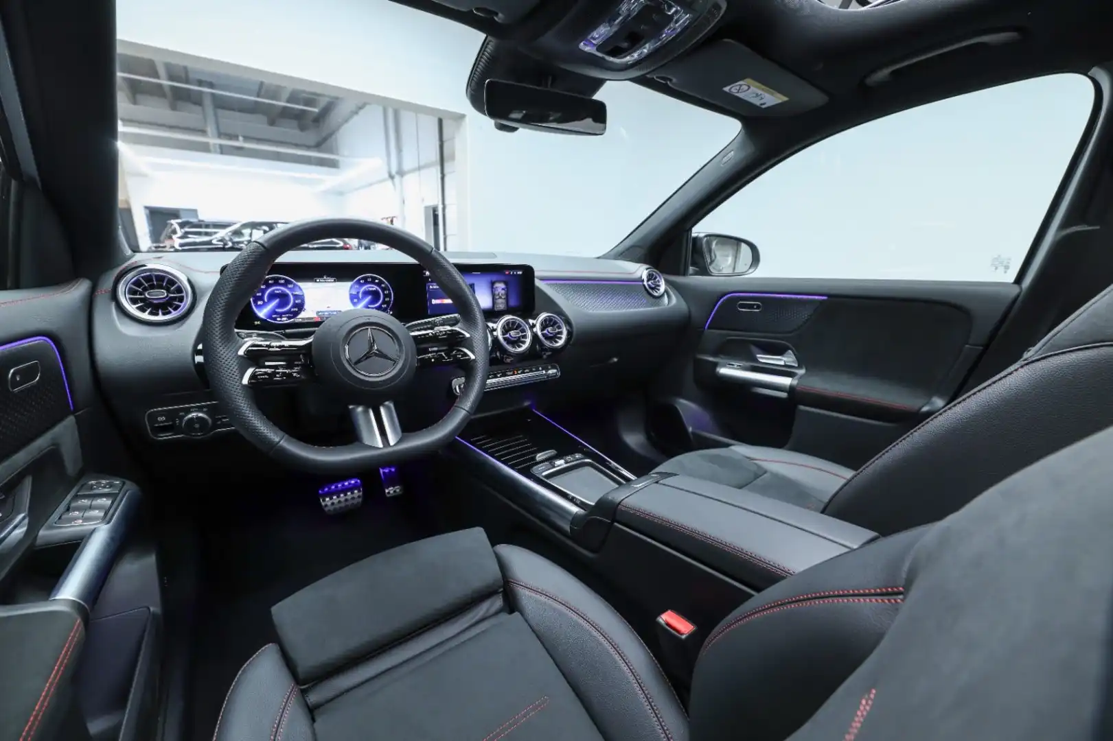 Design: High-tech sølv metallak, AMG Designlinje, Nightpakke, 20" AMG letmetalfælge i multieget design i sort, ARTICO kunstlæder/MICROCUT mikrofiber sort, Taghimmel sort, Fladbundet multifunktionssportsrat i nappalæder, AMG bundmåtter, Interiørliste med stjernemønster belyst, Interiørlister med belysning, Varmeisolerende og mørktonede ruder, Ambiente belysning (64 farver), Tagræling i sort, Belyste trinlister med logo,