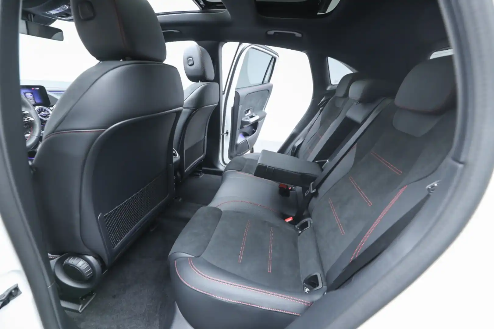 Design: Polarhvid, AMG Designlinje, Nightpakke, 18" AMG letmetalfælge i 5-eget design, ARTICO kunstlæder/MICROCUT mikrofiber sort, Taghimmel sort, Fladbundet multifunktionssportsrat i nappalæder, AMG bundmåtter, Interiørliste med stjernemønster belyst, Interiørlister med belysning, Varmeisolerende og mørktonede ruder, Ambiente belysning (64 farver), Tagræling i sort, Belyste trinlister med logo,