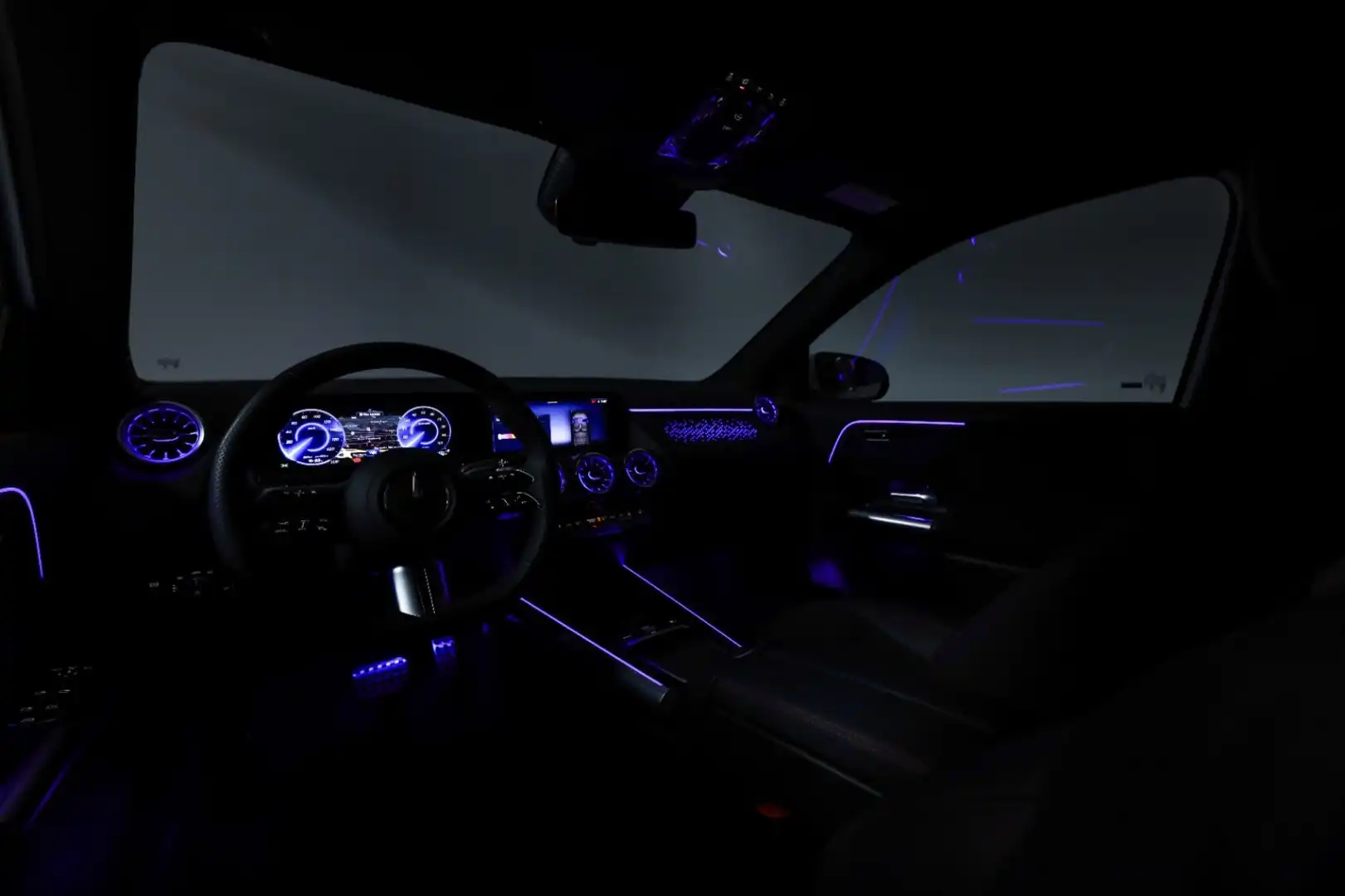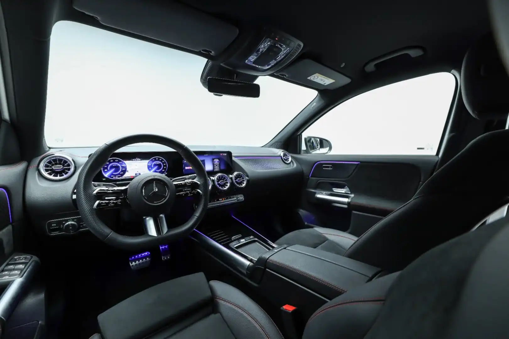 Design: Polarhvid, AMG Designlinje, 18" AMG letmetalfælge i 5-eget design, ARTICO kunstlæder/MICROCUT mikrofiber sort, Taghimmel sort, Fladbundet multifunktionssportsrat i nappalæder, AMG bundmåtter, Interiørliste med stjernemønster belyst, Interiørlister med belysning, Varmeisolerende og mørktonede ruder, Ambiente belysning (64 farver), Tagræling i poleret aluminium, Belyste trinlister med logo,