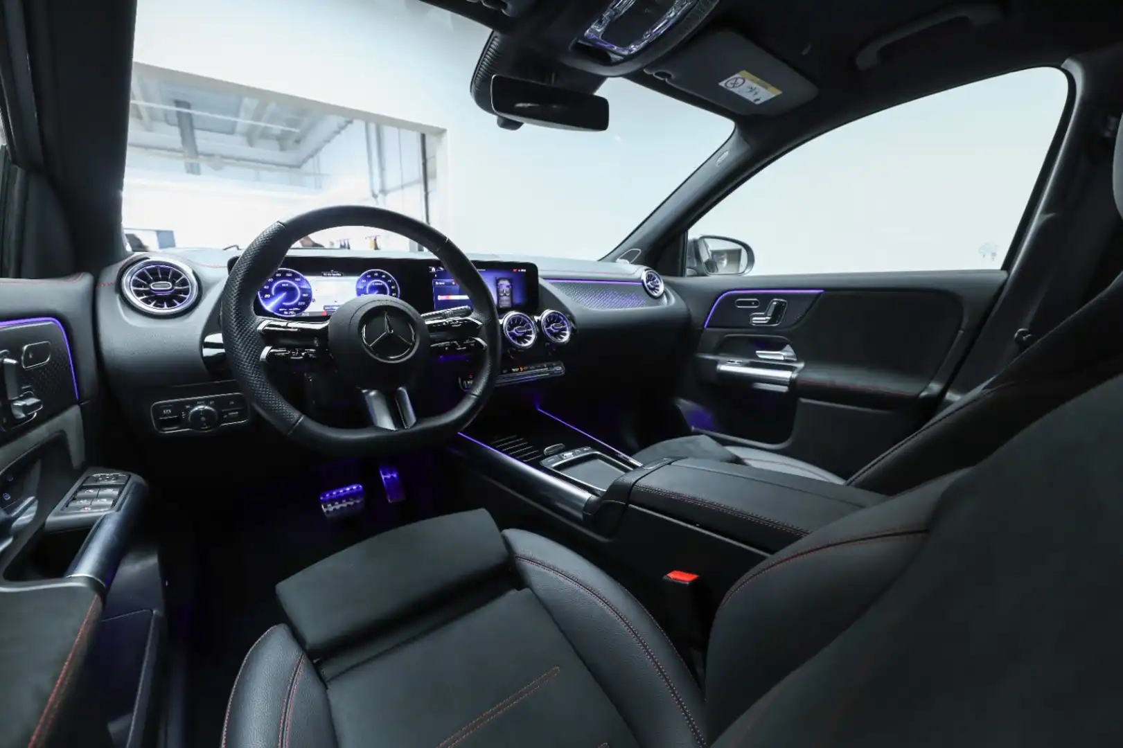 Design: Mountaingrå metallak, AMG Designlinje, 20" AMG letmetalfælge i multieget design, ARTICO kunstlæder/MICROCUT mikrofiber sort, Taghimmel sort, Fladbundet multifunktionssportsrat i nappalæder, AMG bundmåtter, Interiørliste med stjernemønster belyst, Interiørlister med belysning, Varmeisolerende og mørktonede ruder, Ambiente belysning (64 farver), Tagræling i poleret aluminium, Projektion af logo, Belyste trinlister med logo,