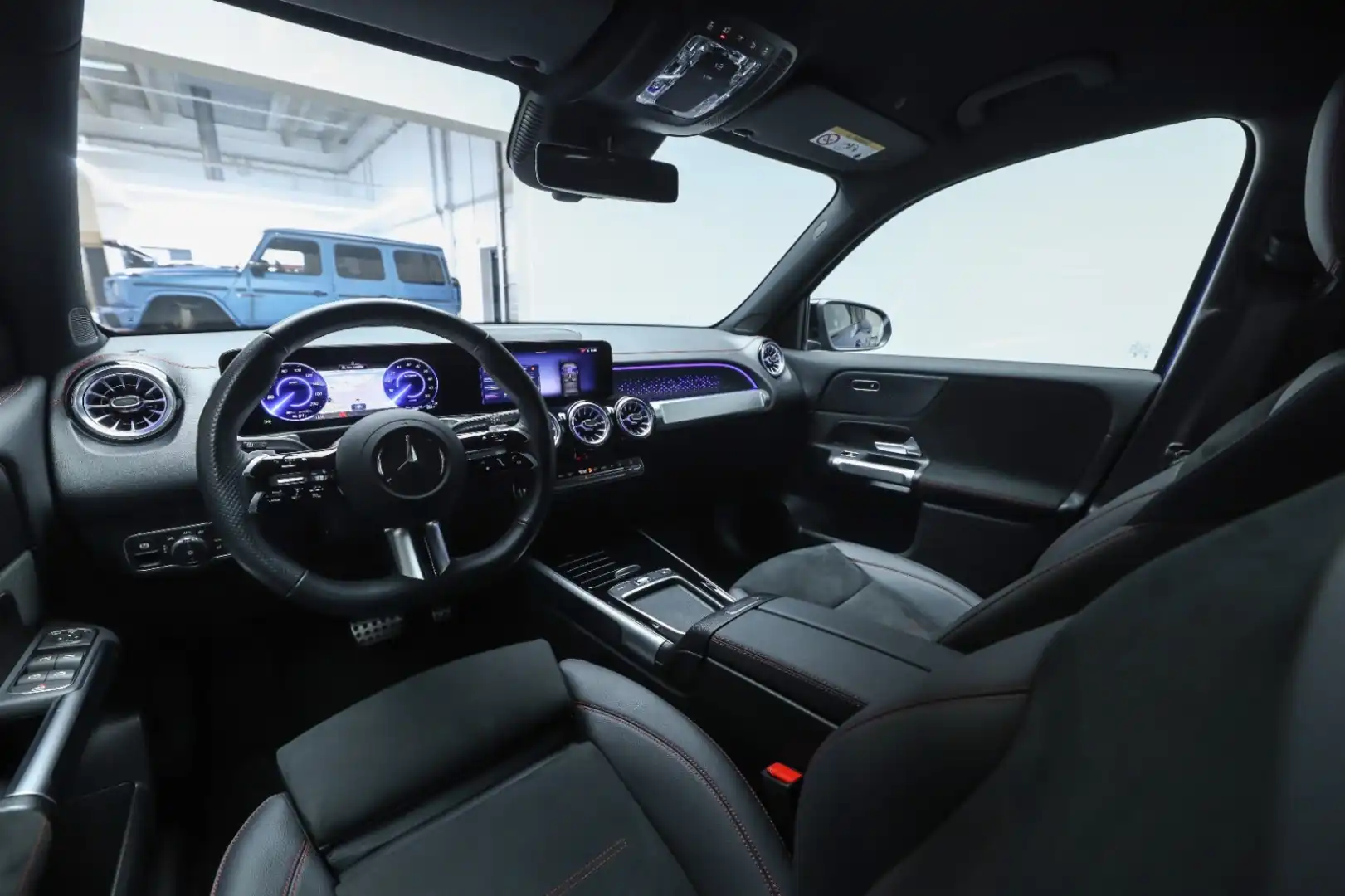 Design: Spectralblå metallak, AMG Designlinje, Nightpakke, 18" AMG letmetalfælge i 5-eget design, ARTICO kunstlæder/DINAMICA mikrofiber sort, Taghimmel sort, Fladbundet multifunktionssportsrat i nappalæder, AMG bundmåtter, Interiørliste med stjernemønster belyst, Interiørlister med belysning, Varmeisolerende og mørktonede ruder, Ambiente belysning (64 farver), Tagræling i sort, Belyste trinlister med logo,