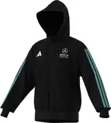 Sportlighed møder komfort: Den sorte sweatjakke er det perfekte valg for alle, der ønsker at vise deres passion for racerløb, selv når de er væk fra racerbanen. Det klassiske fantøjs elegante design har fået et uformelt præg med en stribedetalje på ærmet. Et Mercedes-AMG PETRONAS Formel 1-teamlogo s...