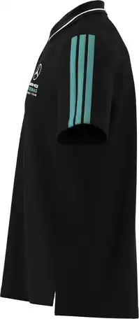 Elegance møder sportyhed! Denne poloshirt er det ideelle beklædningsgenstand til hverdag, fritid eller til dit besøg på racerbanen og giver fans en stilfuld måde at udtrykke deres passion for motorsport på. En stribedetalje på ærmet giver det sorte skjortedesign et uformelt præg, mens et Mercedes-AM...