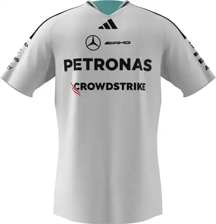 Simpelthen autentisk og en præcis gengivelse af kørernes tøj: Mercedes-AMG PETRONAS Formula One 2026 driver Authentic T-shirt kombinerer kompromisløs ydeevne med et rent, stilfuldt design. Stribede detaljer på hals og skulder giver T-shirten et moderne look. Designet afrundes med team- og partnerlog...