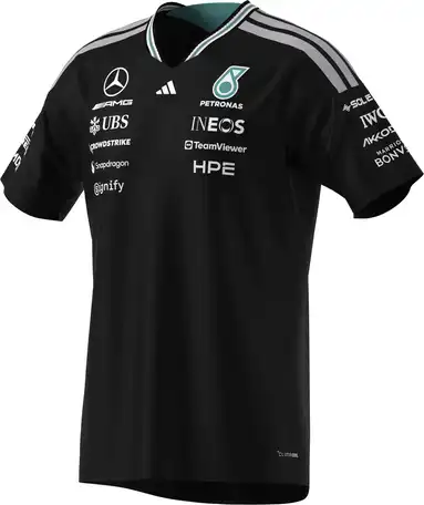 Simpelthen autentisk og en præcis gengivelse af kørernes tøj: Mercedes-AMG PETRONAS Formula One 2026 driver Authentic T-shirt kombinerer kompromisløs ydeevne med et rent, stilfuldt design. Stribede detaljer på hals og skulder giver T-shirten et moderne look. Designet afrundes med team- og partnerlog...